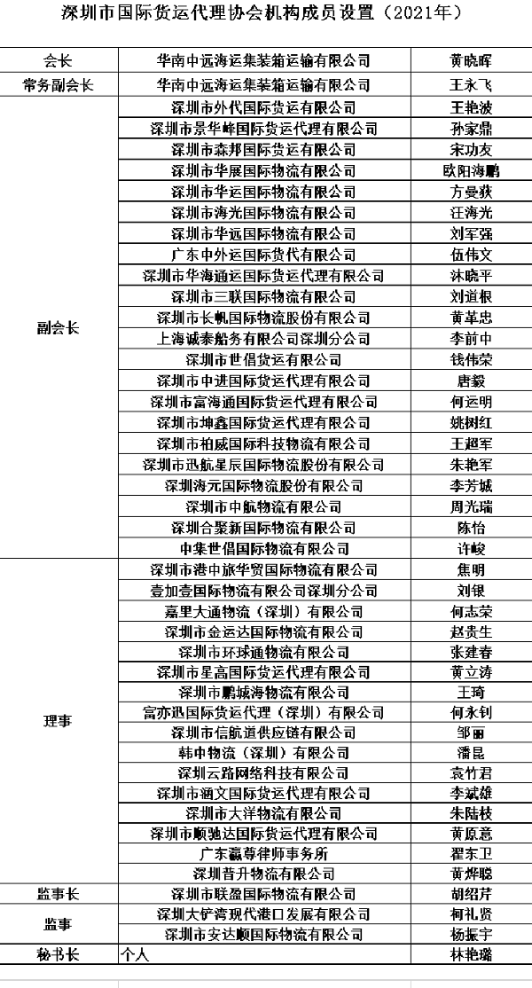 | 21 | 深圳海元国际物流股份有限公司 | 副会长 |